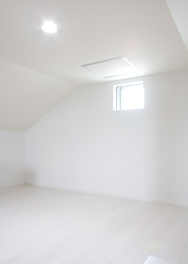光が差し込む明るい屋根裏部屋